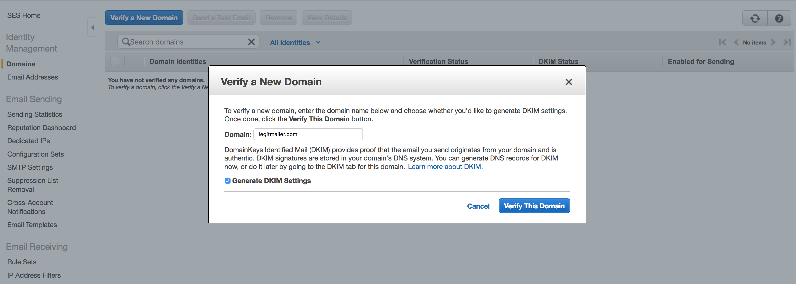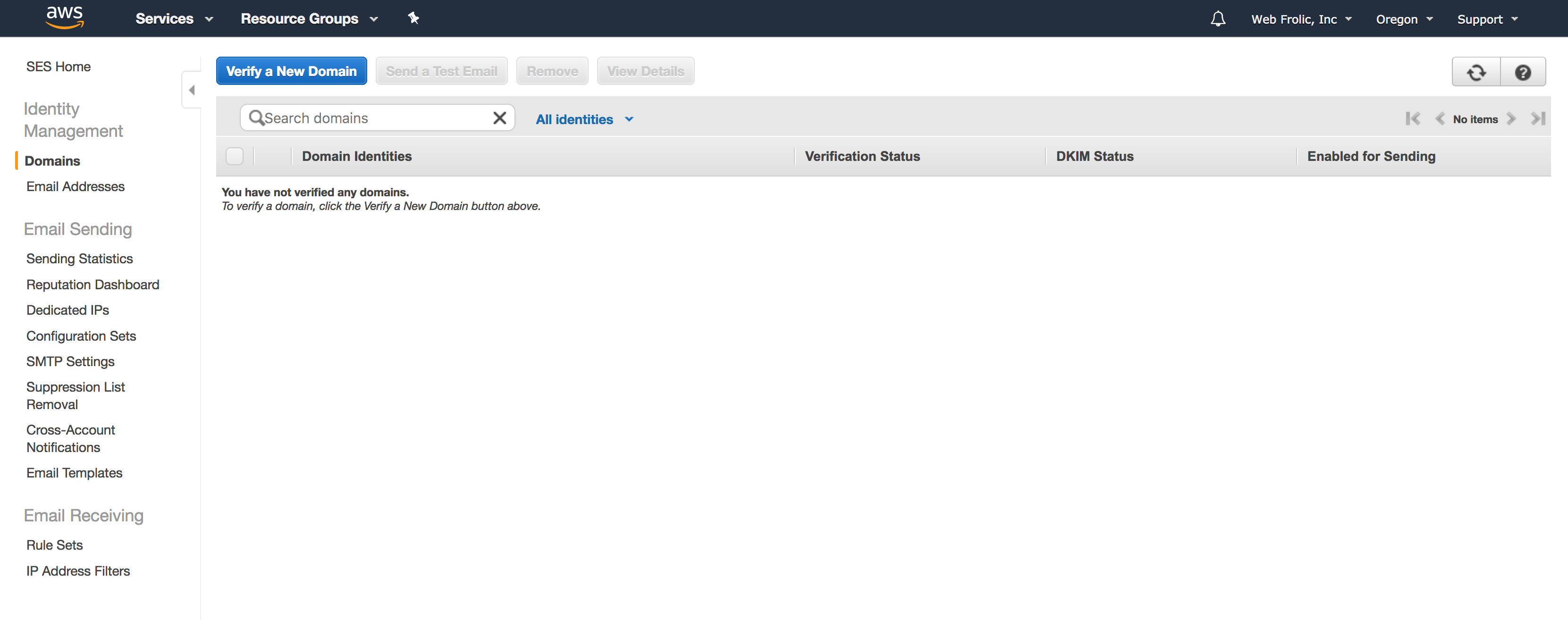 Go to Services -> Customer Engagement -> Simple Email Service -> Domains.