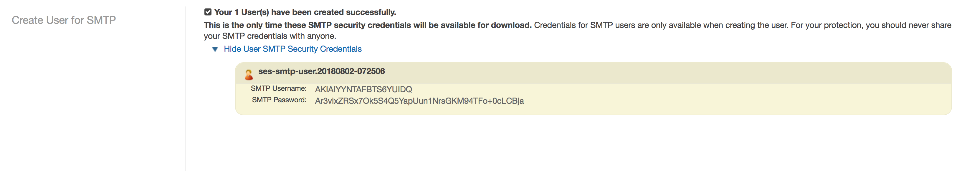 Setup SMTP goto Services -> Customer Engagement -> Simple Email Service -> SMTP Settings create my smtp credential